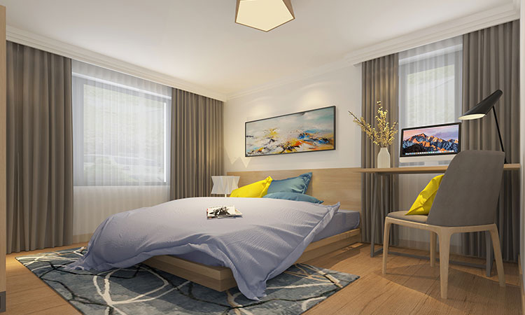 裝修基調為原木色柔和的簡約北歐風,硬裝上天花用疊層走邊的形式點綴主題,家具上采用簡單的拼版結構填滿空間,樓上引用日系榻榻米形式簡約北歐床品與開放式衣帽間,整個空間使人感受舒適、回歸自然。