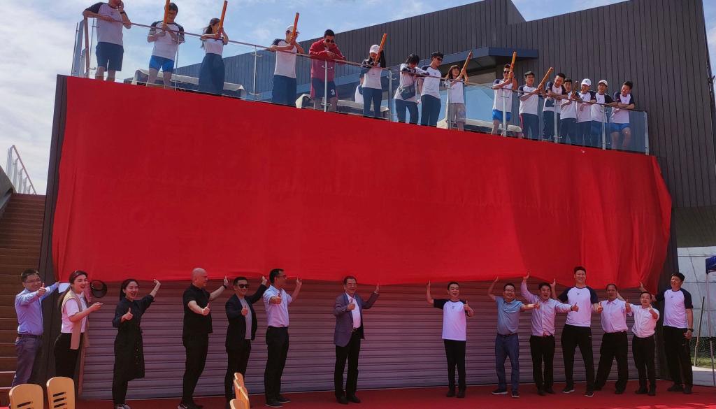 隨后,在場嘉賓共同為新艇庫揭牌。陳勁松校友還和賽艇隊學生一起體驗了賽艇訓練。